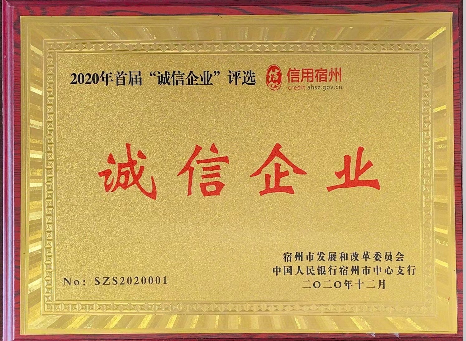 公司收到“宿州市誠信企業(yè)”和“宿州市信用協(xié)會理事單位”榮譽獎牌
