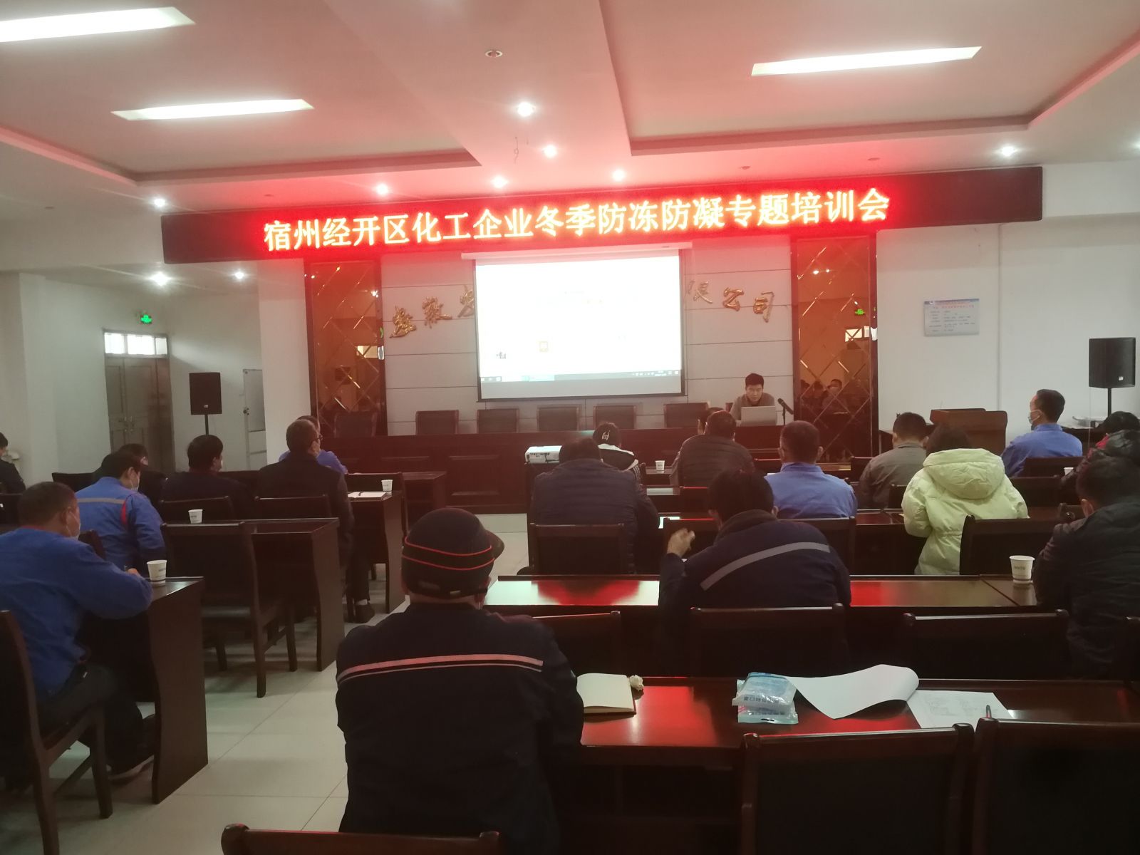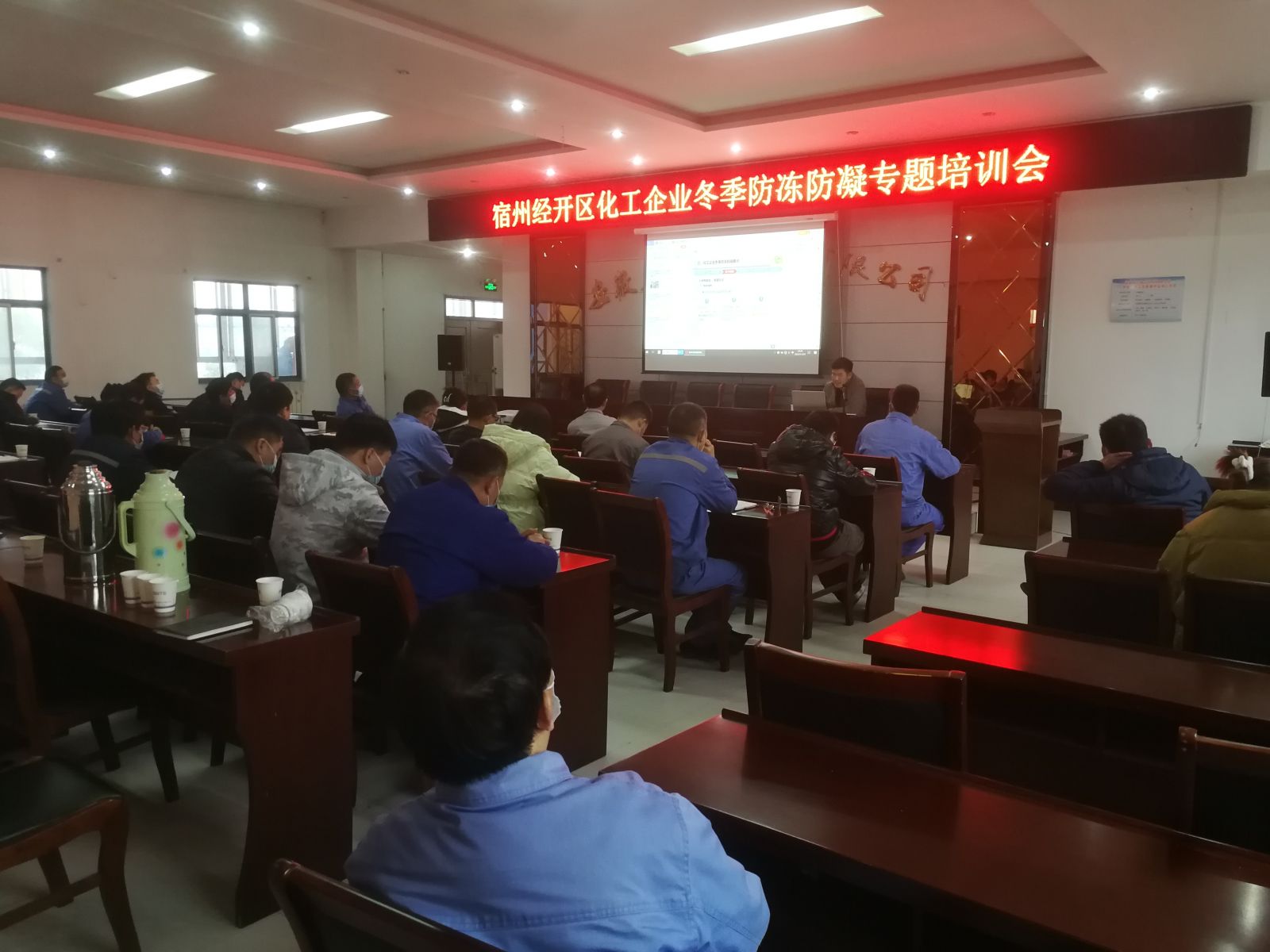 2022年11月29日,宿州經(jīng)開(kāi)區(qū)化工企業(yè)冬季防凍防凝專題培訓(xùn)會(huì)在我司研發(fā)中心電教室召開(kāi),公司安環(huán)部組織各分廠一線員工參加此次培訓(xùn),認(rèn)真學(xué)習(xí)冬季防凍防凝知識(shí)。
