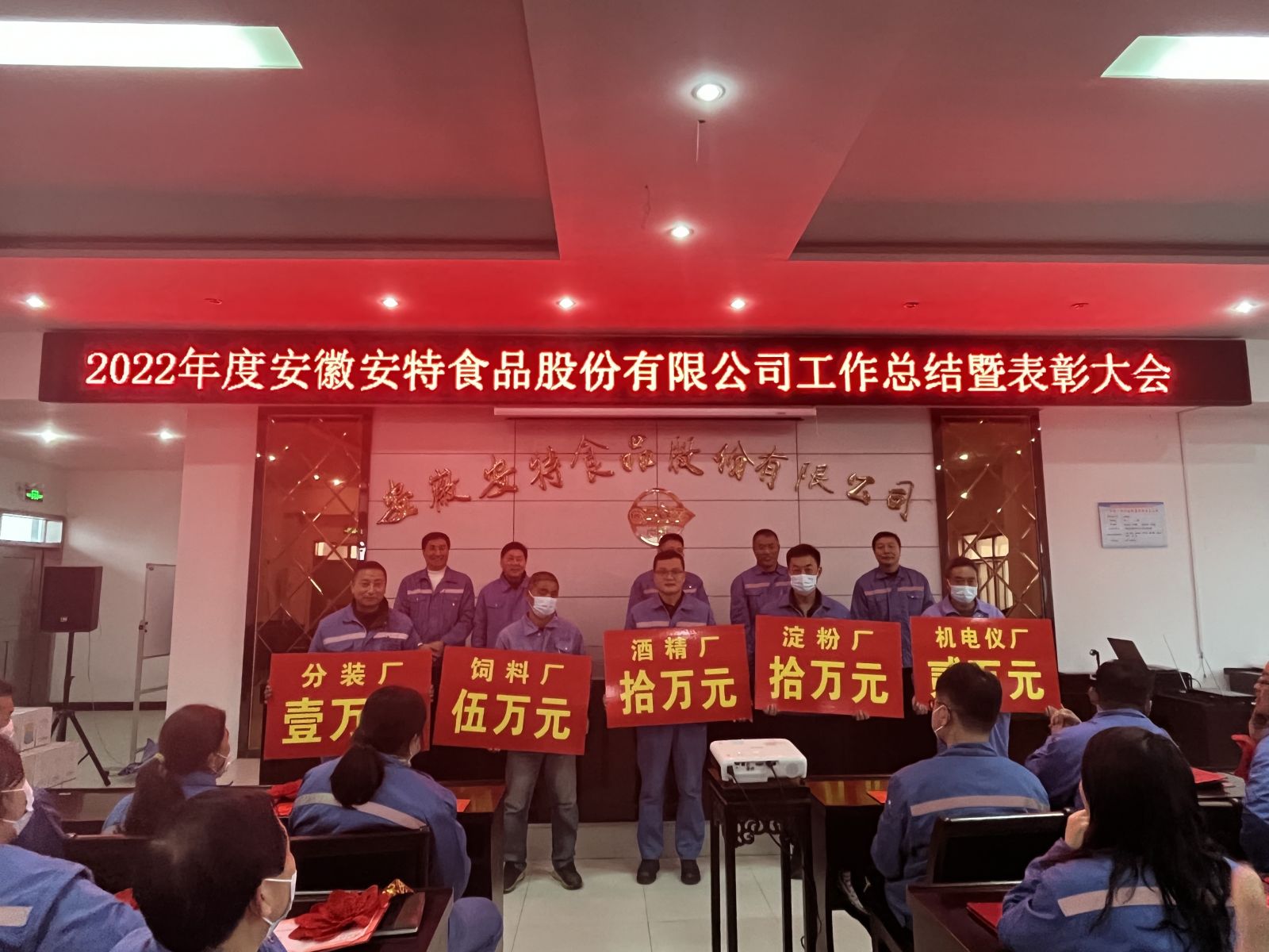 2022年,酒精廠、飼料廠全體員工圍繞公司生產(chǎn)經(jīng)營目標,瞄準生產(chǎn)中存在的問題,深入研究分析,通過技術(shù)改造、工藝優(yōu)化、人員專業(yè)技能提升,完成了公司下達的考核指標,為公司生產(chǎn)經(jīng)營目標的實現(xiàn)做出了突出貢獻。淀粉廠、機電儀廠、分裝廠在合理化建議、節(jié)能減排等方面也為公司做出突出貢獻。為弘揚士氣,經(jīng)公司研究決定,對在2022年度工作中取得優(yōu)異成績的酒精廠、飼料廠、淀粉廠、機電儀廠、分裝廠的全體員工進行嘉獎,獎勵酒精廠人民幣拾萬元,獎勵淀粉廠人民幣拾萬元,獎勵飼料廠人民幣伍萬元,獎勵機電儀廠人民幣貳萬元,獎勵分裝廠人民幣壹萬元。